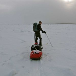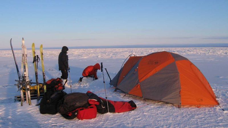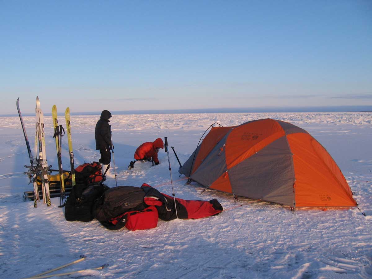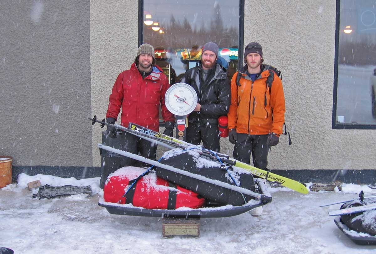 After a bit of stress of the holidays, traveling, training, many late nights and 39 hours on the Greyhound bus, I hope everyone’s immune system is still strong and we all stay healthy for the duration of the expedition, we could be out 21 days of full exposure, maybe we can complete the trip sooner but it’s hard to tell. I figure we will not be moving super fast at first as we will be figuring out our systems, adjusting to the terrain, and it will take a few days for our bodies to adjust and for us to become efficient at set up, break down of camp and loading the sleds. We met a few R.C.M.P officers today and told them about our trip, I gave them a copy of our trip plan. I made the last call home to Robyn before heading out to the ice and let her know again our plans and estimated timeline. We weighed in our sleds and packs, the sleds were 140lbs each once evened out and our packs all weighed in at 25lbs, not to bad. Weather was quite mild today for this time of the year, not a bad way to start our first day. We were getting antsy to get going and looking forward to getting our first few steps on the ice. I have been thinking, talking and dreaming about doing this trip for quite some time now and am excited to finally get it off the ground and running.